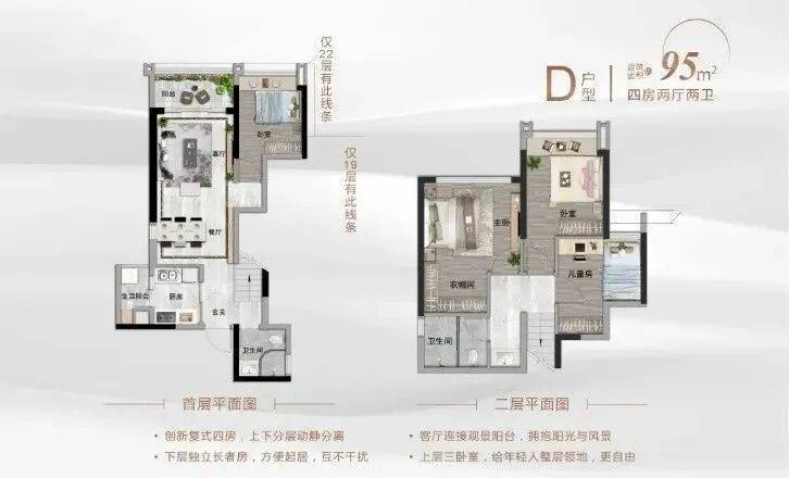 王牌户型4:约95㎡ 稀缺复式四房 约6米层高