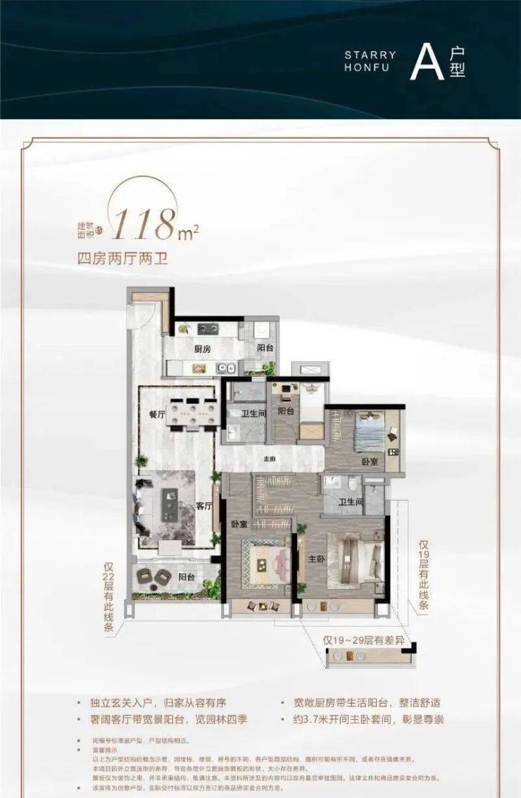 王牌户型1:平层约118㎡ 四房两厅两卫