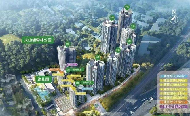 生态资源的占位,是项目另一大亮点。紧邻约946万平方米大山乸森林公园,城市绿肺近在咫尺,丰富的山体植被与自然氧吧环境,为日常生活增添舒适底色。社区内部打造约6000平方米山体公园景观,将自然地势融入园林设计,形成多层次立体景观系统。整体抬高设计增强私密感与归家仪式感,主入口打造高挑门楼与林荫空间,水景与绿植交织,营造沉浸式归家体验。多元架空层空间设置为社区泛会所,满足邻里交流、亲子互动与休闲运动需求。国标绿色二星建筑标准、系统门窗与中空玻璃配置,提升节能与舒适性能,体现品质住宅的细节追求。