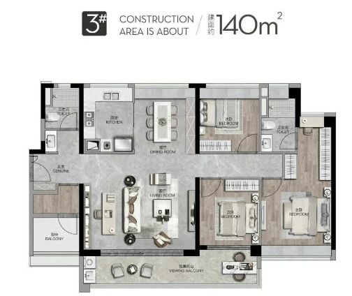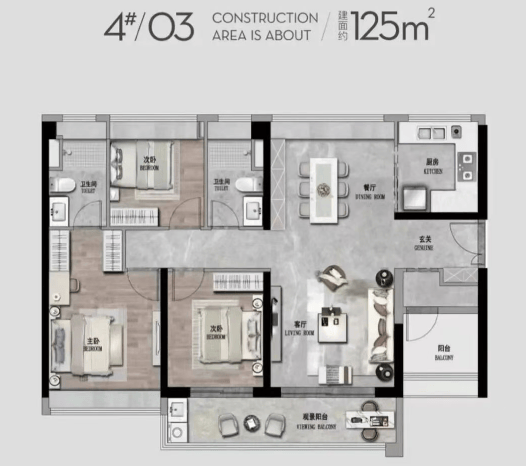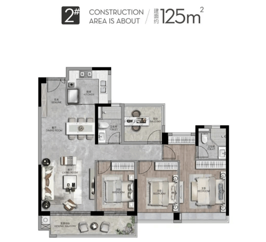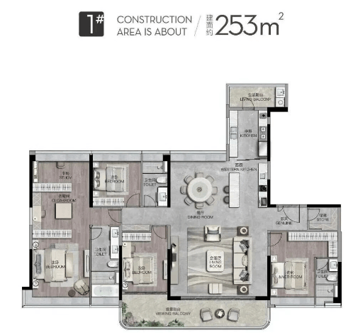 主力户型包括约105/125/140/253/260㎡三至四房,得房率高达95%,满足不同家庭的需求。