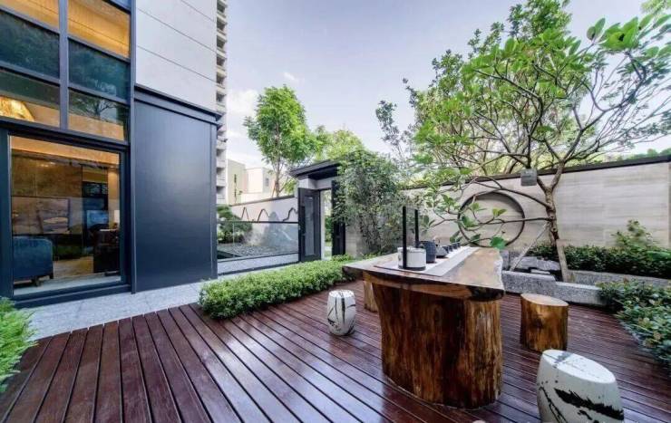 翠竹低墙自然围合而成一方小院,在一方石雕水景中 ,观鱼赏水慢享惬意。