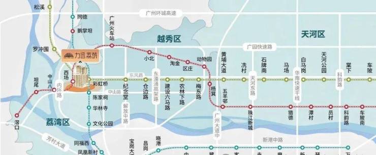力迅荔筑的交通配套堪称一流,下楼即是地铁5号线与正在建设中的13号线二期西场站,便捷的双地铁设计使得居民出行更加轻松。乘坐地铁2站即可抵达越秀区,9站直达珠江新城,极大地方便了上班族的日常通勤。同时,自驾出行也十分方便,通过东风路、内环路、环市路以及增槎路四大黄金走廊,可迅速到达市内的各个区域。对于公交出行的居民来说,距离最近的和平新村站(西行)仅有134米,公共交通网络覆盖广泛,出行无忧。