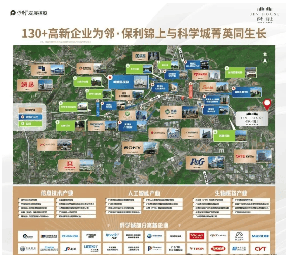 保利锦上坐落于广州黄埔千亿科学城板块,这一区域是广州产业升级的核心引擎,汇聚了 128 家世界 500 强企业、累计 299 个强企项目,科创企业数量超 1005 家,人均 GDP 排名广州第一。科学城不仅是科技创新的高地,更是人才集聚的洼地,聚集了全市一半的科研机构,信息技术、人工智能、生物医药等新兴产业齐头并进,未来发展潜力无限。