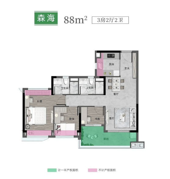 75㎡楼王全南三房:作为科学城一手三房总价最低的户型,该户型性价比极高,西南向望山,景观视野优越。户型实用率超 9 成,做到了四开间朝南,视野及采光面都非常出色。此外,还配备了 U 型厨房、5.2 米 270° 观景阳台、双面采光 + 对流主卧等亮点设计,堪称同赛道的天花板级产品。
