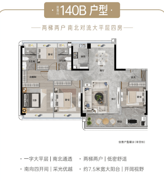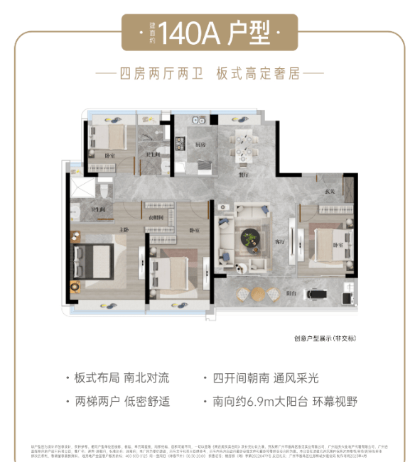 瑞麓府目前主推建面约140-253㎡的南向板式大平层,部分楼栋更可直瞰长隆野生动物世界,成为“全广州唯一看得见长颈鹿的大平层”。户型设计兼顾功能与美学,四至五房格局满足三代同堂需求,实用率高,空间感强。
