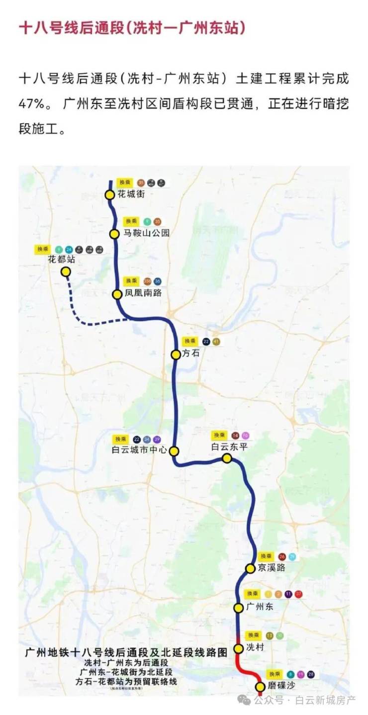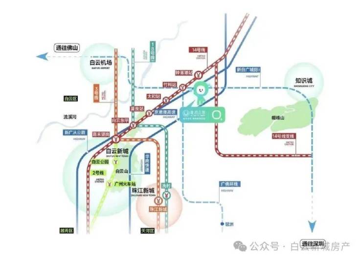 未来的立体化蓝图则更具想象力。规划中的地铁18号线北延段(在建中)将在白云东平站与14号线交汇,这条设计时速160公里的“粤港澳大湾区南北快线”,将让业主未来有望实现7站直达冼村(珠江新城东区),通勤效率再次飞跃。此外,通过14号线竹料站,可快速换乘广佛环线(预计2024年通车)与新白广城际。广佛环线3站即达天河智慧城,5站到琶洲;新白广城际1站直达白云机场,并向南连接东莞、深圳。这种“双地铁+双城轨”的轨道矩阵,使项目成为连接广州中心、机场、湾区东西两岸的重要节点。
