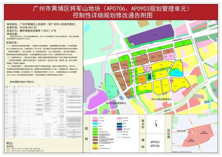 总占地面积:整个黄埔未来城项目总占地约106万㎡(相当于约3个猎德村旧改规模),首开地块(将军山一号地块)占地面积约33,900㎡。