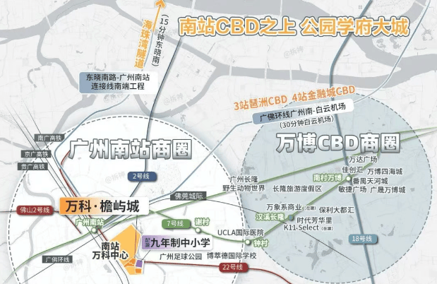 万科·檐屿城位于广州市番禺区广州南站商务区内,紧邻多条地铁线路和交通枢纽,享有便捷的交通条件。