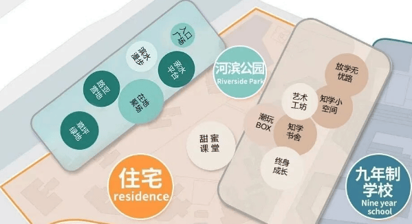 完善的教育资源:配建9班幼儿园和36班九年一贯制学校,并引进知名教育品牌,保障孩子的教育需求。