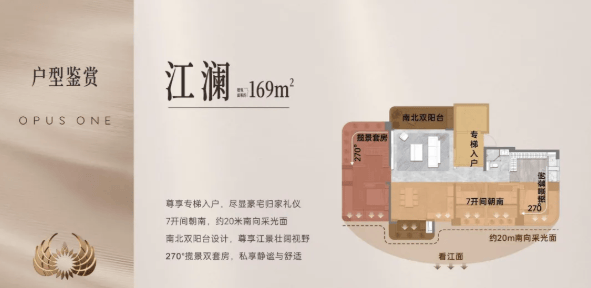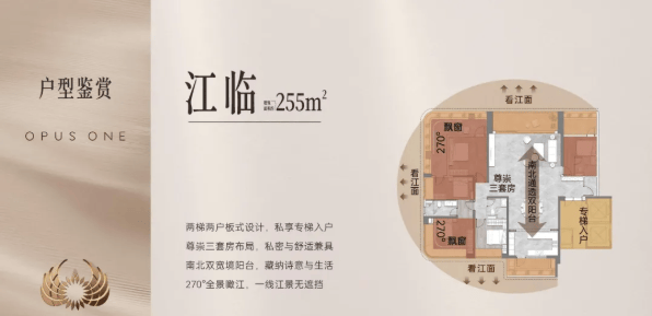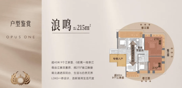 独特的设计理念:采用IMAX环幕瞰江视野设计,住宅整体抬高约14米,最大化利用江景资源。
