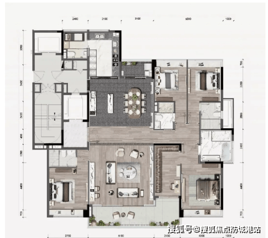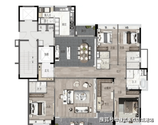 259㎡、290㎡户型主打高端改善,空间尺度升级,布局合理,动静分离,客厅采用大横厅设计,连接景观阳台,延伸空间视野,彰显大气格调;主卧配备独立卫浴、衣帽间与观景飘窗,兼具实用性与舒适性,次卧均为套房设计,满足多代同堂或亲友来访居住需求,同时预留书房、茶室等多功能空间,适配高端家庭多样化生活需求。