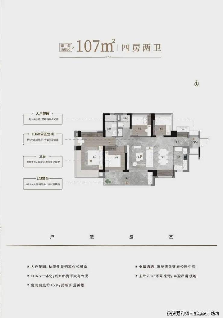 107㎡四房两厅两卫:总价约390万,四开间朝南,双阳台设计,满足三代同堂需求;