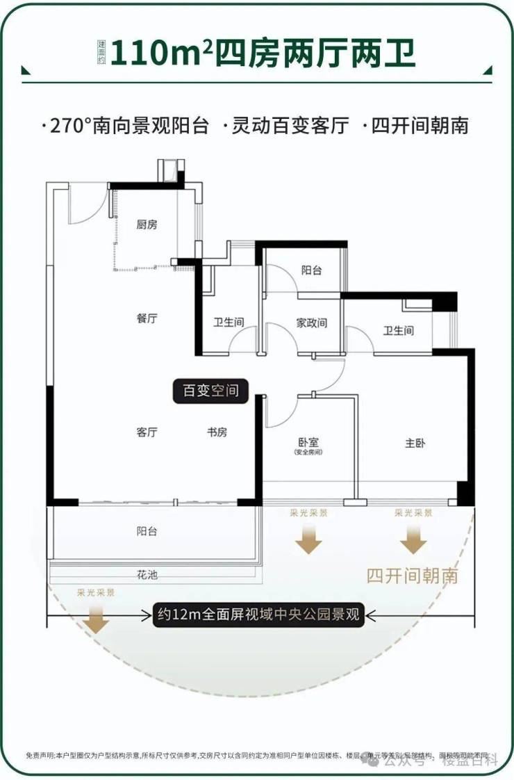 住宅户型:110-175方四房,阔境舒居,适配全家需求