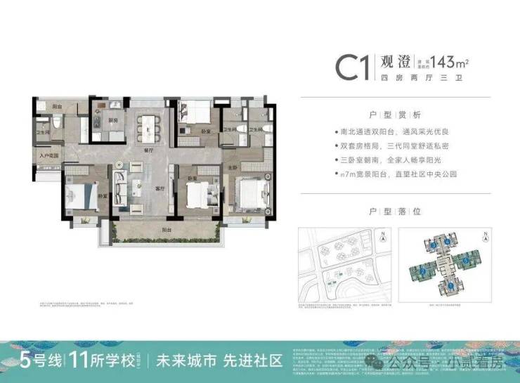 户型涵盖88-93㎡三房两卫,123、139、143四房两卫及四房三卫,但这边的使用率没有那么高,现楼