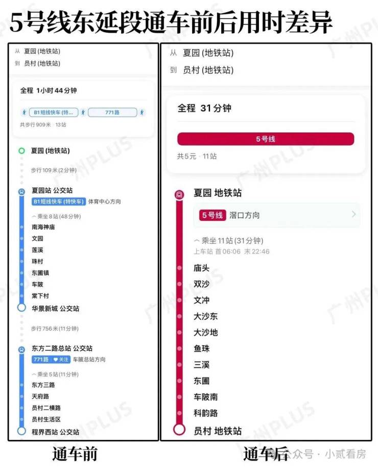 但自从5号线东延段通车后,便利度直接拉满,家门口上车,就近从夏园站或者保盈大道站搭乘5号线,刷两个小视频就珠城等城市重要CBD,完全不需要换乘。