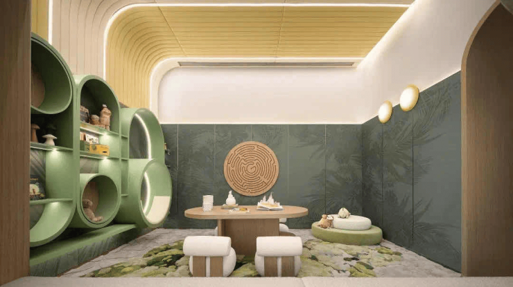 楼栋架空层设置“微卷站”、“趣玩吧”、“氧乐多”和“慢生活”主题空间,丰富业主的生活