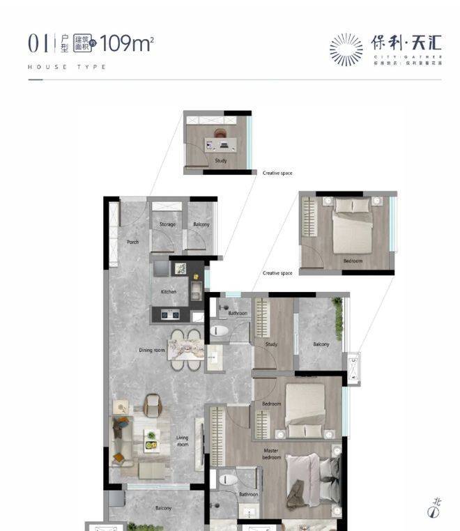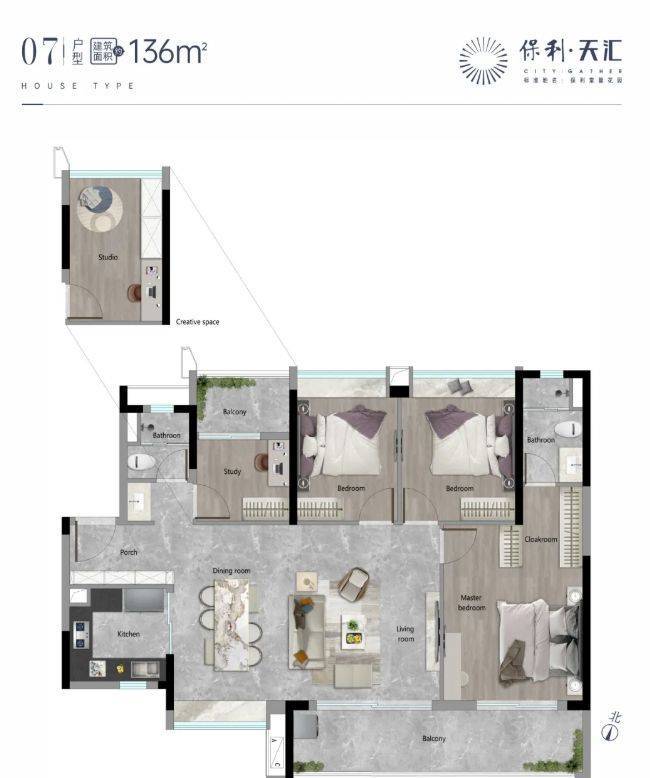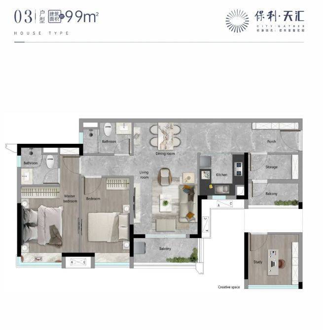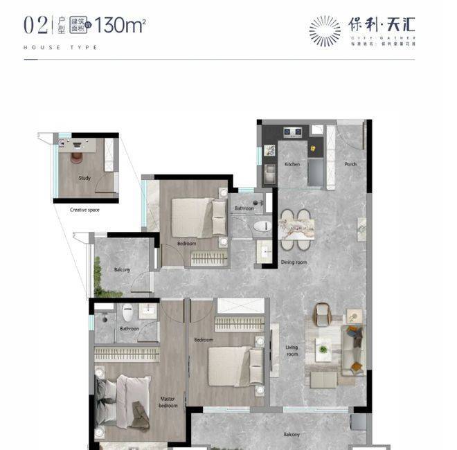 保利天汇的设计理念,以保利全生命周期居住系统2.0——天字系品质为核心,融合“智慧化、健康化、舒适化、多元化”的现代人居需求,结合天河智慧城板块的发展定位,打造“高端、宜居、便捷、智能”的品质大盘,既满足业主的日常居住需求,又兼顾品质感和实用性,让业主在核心板块既能享受便捷的生活配套,又能拥有舒适、智能的居住环境。