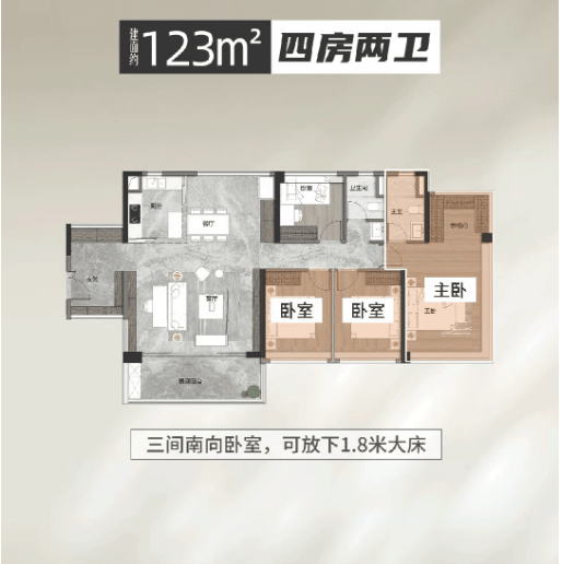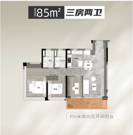 全南向采光:所有户型均为全南向设计,确保充足的自然光线,营造出明亮舒适的居住环境。