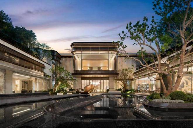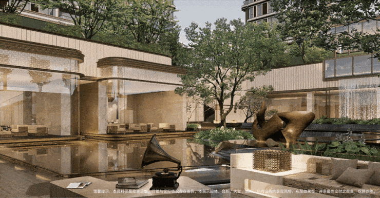 在园林设计上,项目以传统轴对称制式为设计灵感,打造贯穿南北的约330米园林通廊,以通廊为轴,从气派主入口到两侧园境,均一一呼应,形成层次丰富、错落有致的园林景观。园林设计融入了现代景观设计理念,结合广州的气候特点,种植了多种适配本地的景观植被和观赏树木,搭配休闲步道、景观水景、下沉庭院等元素,与周边的临江带状公园、绿地公园(建设中)相互呼应,让社区生态与城市生态完美融合,为业主打造专属的天然氧吧,提升居住的幸福感和舒适度。下沉庭院采用精致金属线条搭配玻璃材质,极具现代时尚感,前庭水景搭配繁茂绿植,营造出自然舒适的居住氛围,让业主在社区内就能享受沉浸式的自然体验。