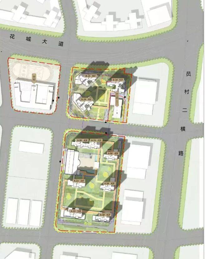 在容积率方面,项目采用南北地块差异化规划,北地块容积率约3.8,南地块容积率约3.1,经过科学测算的容积率既保证了社区的居住舒适度,又最大化利用了土地资源,南地块较低的容积率的更是为业主提供了更宽敞的居住空间、更充足的绿化和公共活动区域,大幅提升了居住的舒适度和尊崇感,避免了高密度社区的拥挤、采光差、通风不畅等问题,完美适配改善型家庭、高净值人群对高端居住的高要求。