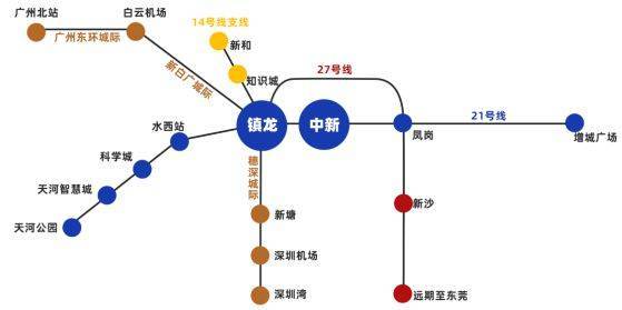 从项目出发,乘坐快车3站即可抵达天河,而且还能通过镇龙站实现与广州白云机场、深圳宝安机场、广州东站等枢纽的互联。