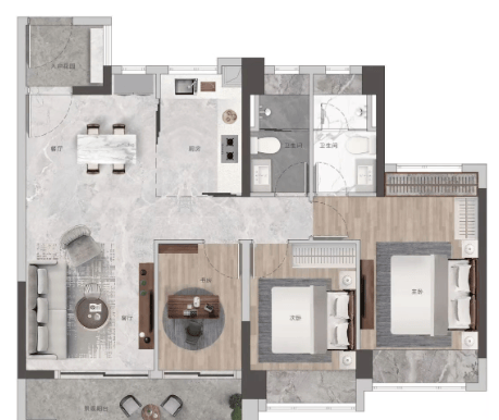 高新仕林苑采用现代东方禅意设计理念,打造了多款不同面积段的户型,从99㎡三房两厅两卫到182㎡四房两厅三卫,均采用了大面积玻璃、IMAX级景观阳台、全景超宽飘窗等设计元素,提供高达95%-99%的超高使用率。特别是其层高达到3.15米至3.3米,比普通住宅层高标准高出许多,赋予了居住者更开阔的空间感和更高的舒适度。