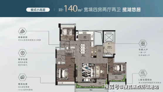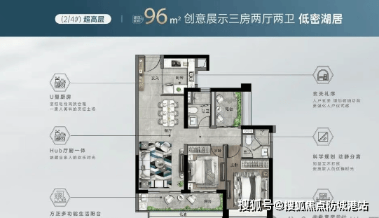 超高层96㎡三房、125㎡/141㎡四房:高层设计,视野开阔,尽享城市美景。