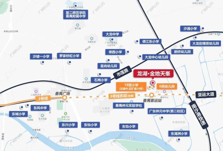 3号线东延段(已开通):傍江站上盖,一站到番禺广场;