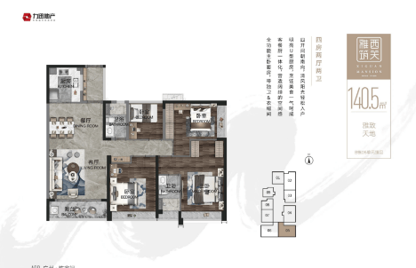 140㎡四房户型规划阔绰空间尺度,满足改善型家庭居住需求;动静分区合理,休憩区与活动区互不干扰,保障居住私密性;主卧采用套房设计,配备独立卫浴与衣帽间,彰显主人尊崇身份;超大阔景阳台延伸室内空间,可俯瞰社区景观与城芯风貌;多卧室设计兼顾家庭成员居住需求,空间灵动可改造,满足全生命周期居住需求。两大主力户型均秉持高空间利用率原则,科学规划每一寸空间,结合优良采光通风条件,为业主打造舒适实用的城芯居住空间。