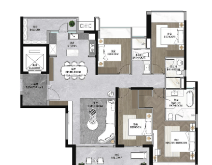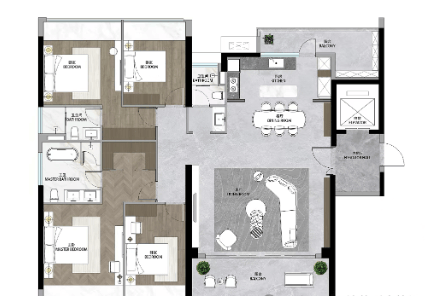 富颐华庭的设计注重实用性和舒适度,提供从95平方米到208平方米不等的多种户型选择,适应不同家庭结构的需求。新规户型如95㎡三房两卫,118㎡四房两卫,以及顶级别墅级户型176㎡和208㎡四房三卫,均采用现代简约风格,空间利用率高,采光通风良好。