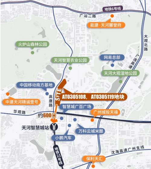 答:项目位于天河智慧城核心区,距离地铁 21 号线天河智慧城站约 600 米,周边临近广百广场、杨梅河等配套。