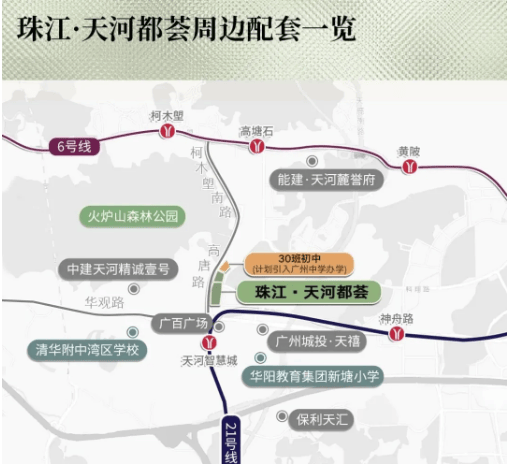 项目地理位置得天独厚,距离地铁 21 号线天河智慧城站仅约 600 米,步行 5-8 分钟即可抵达地铁站,出行十分便捷。通过 21 号线快线,3 站可直达金融城,5 站直达珠江新城核心商圈,轻松实现 “工作在核心,居住在舒适区” 的理想生活。