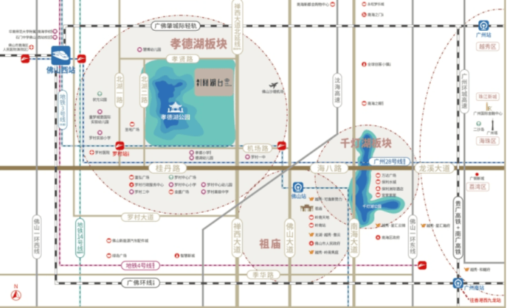 项目交通体系完善,距离佛山地铁3号线罗村站约800米,三站即可抵达禅城,五站直达桂城,轻松实现高效通勤。区域内汇聚贵广高铁、南广高铁、广佛肇城际、广佛环线在建以及广州地铁28号线规划,形成多层次立体交通网络。自驾方面,通过桂丹路-海八路可快速到达千灯湖板块,实现珠三角核心区域便捷联通。完善的交通体系保障了业主城市生活的高效便捷与未来潜力。