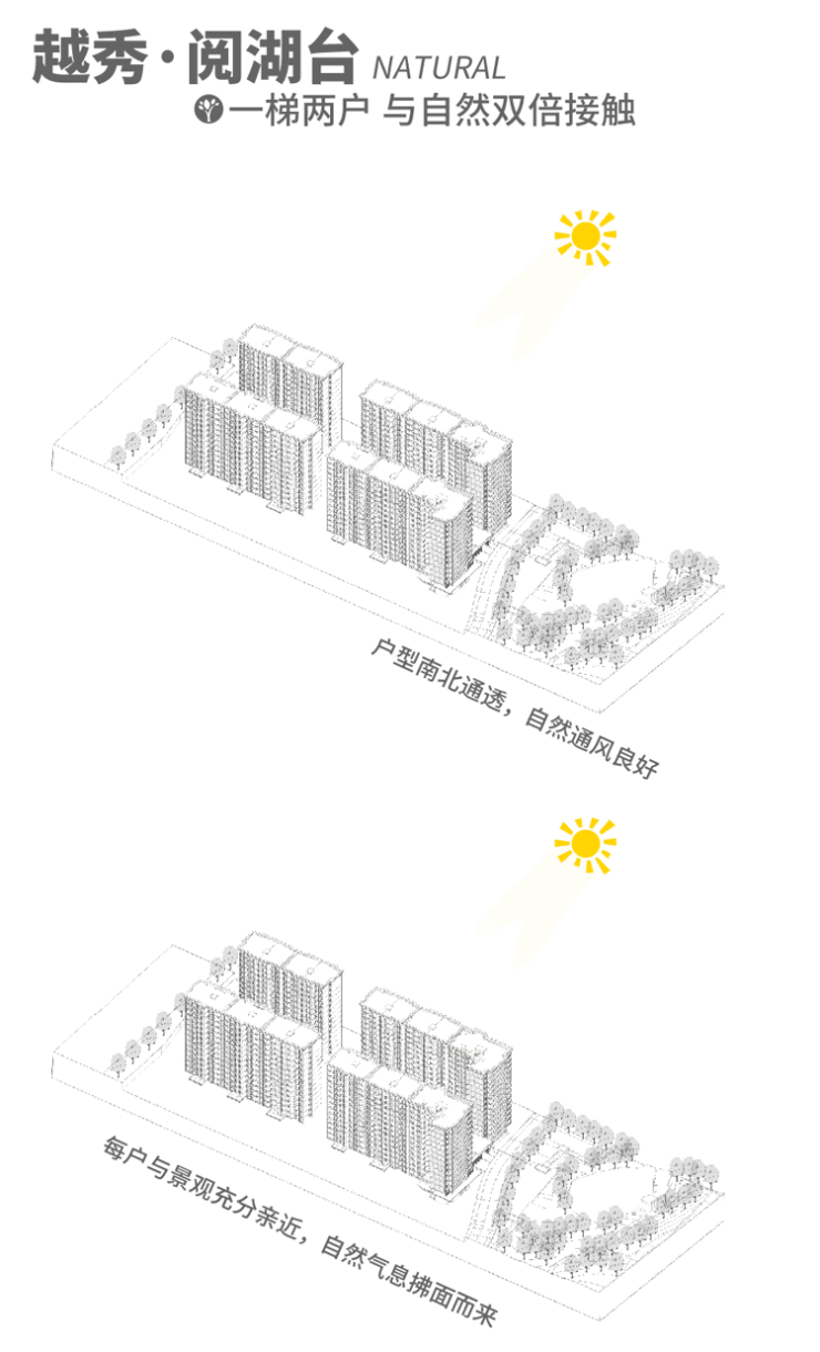 阅湖台整体规划低密度板楼小高层,绿化率约30%,采用一层两户奢级配置,15层舒适楼高,实现居住私密性与舒适度兼顾。社区围绕孝德湖及湖岸绿地布局,打造无界园林及亲湖出入口,居民可步行即达湖畔,感受自然与生活融为一体的居住体验。通过科学的空间设计和开放式景观布局,实现室内外通透感,让湖居生活真正落地,提升整体居住品质。