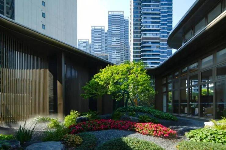 园林内种植72 种名贵树木,四季有花、四季有绿,春有繁花似锦、夏有浓荫蔽日、秋有金桂飘香、冬有苍松傲雪,推窗见景、出门入园,日常散步都能走出诗意来。园林内还规划了水景、假山、亭台、步道,流水潺潺、绿植茂密,空气清新、环境静谧,仿佛住在城市绿肺之中,有效隔绝噪音、净化空气,为业主打造健康宜居的生活环境。