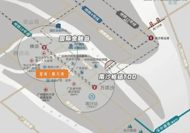 在南沙整体发展格局中,一条清晰的发展主轴正不断向南延伸。从早期的蕉门与金洲板块,到后来崛起的灵山岛尖,再到如今被重点打造的横沥岛国际金融岛以及南沙综合枢纽区域,城市发展重心逐步南移,形成新的价值带。位于这条发展轴线附近的万顷沙板块,正成为近年来关注度持续上升的重要居住区域。星河·畔月湾正坐落于这一发展轴线西侧,与横沥岛仅一水之隔,区位条件具有明显优势。