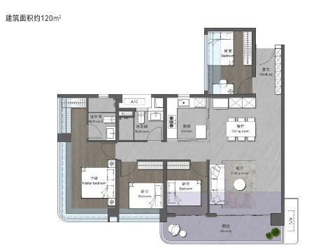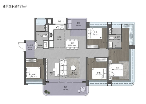 131㎡创意四房两厅:环幕双景阳台,270° 环幕视野。