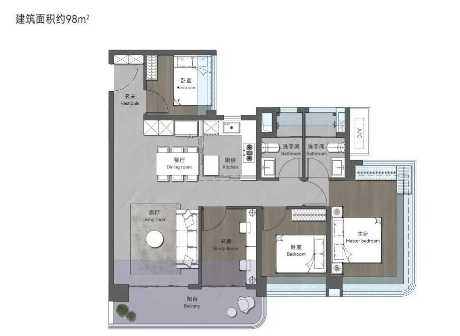 98㎡创意四房两卫:LDKB 相融,餐客空间宽敞,承载家庭幸福时光。
