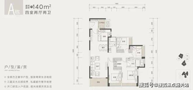 建面约140㎡户型:是整个项目货量最多,最主打的户型,分为横厅和竖厅设计。