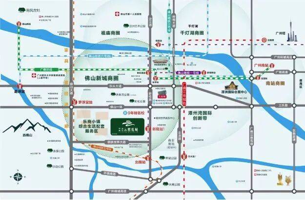 城市干道:佛山大道、新桂路、岭南大道等,方便前往禅城祖庙核心区、乐从天佑城、南海桂城等地。