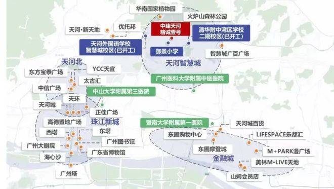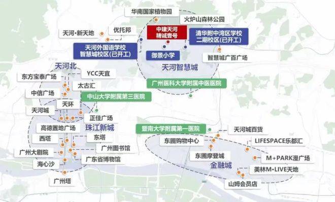 周边商圈配套相当成熟。2km 范围内就能享受到 7.5 万㎡的智慧城广百广场,平时逛个街、吃个饭啥的都方便。要是想去更大的商圈,太古汇、K11、IGC、天河城这些大型商圈,开车一会儿也就到了。医疗资源也丰富,周边有南方医科大学第三附属医院、广州复大肿瘤医院、广州市天河区中医医院等 3 大甲级医院,为家人的健康保驾护航。