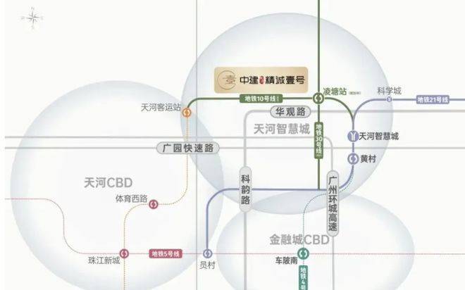 这交通啊,那叫一个四通八达。有 2 条主干道,科韵路和华观路,沿着这俩路,珠江新城、金融城、智慧城这黄金三角圈随便串。3 条地铁线,距 21 号线智慧城站约 1.5km,10/30 号线 (规划) 交汇站华观站离得更近,就约 600m。还有 3 条高速,华南快速干线、广园快速、广州环城高速,一脚油门,广州中心区轻松到。不管是上班通勤,还是出门游玩,都方便得很。