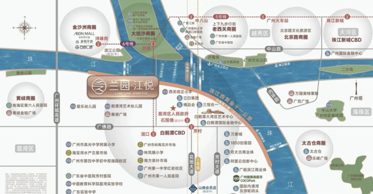 地段决定价值,环境滋养生活。广州兰园江悦的核心优势,在于将不可复制的地理位置与得天独厚的自然环境完美融合,既占据白鹅潭CBD的时代风口,又坐拥珠江头排的稀缺江景资源,同时依托周边完善的生态与交通配套,打造“江、城、园”共生的高阶人居环境,让业主在繁华都市中,私享一片静谧与诗意。