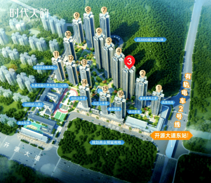 从配套来看,时代天韵的配套堪称 “刚需顶配”:楼下就是省级名校,12 年教育全落地;门口就是有轨电车,无缝接驳地铁,通勤市区超方便;周边成熟配套环绕,自带大型商业体,生活便利度拉满;35% 绿化率 + 3000 亩山体,生态环境优越,居住舒适度高。所有配套均已落地,不是规划中的 “空中楼阁”,不用等待,入住即享。