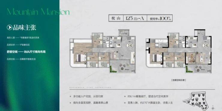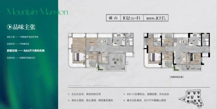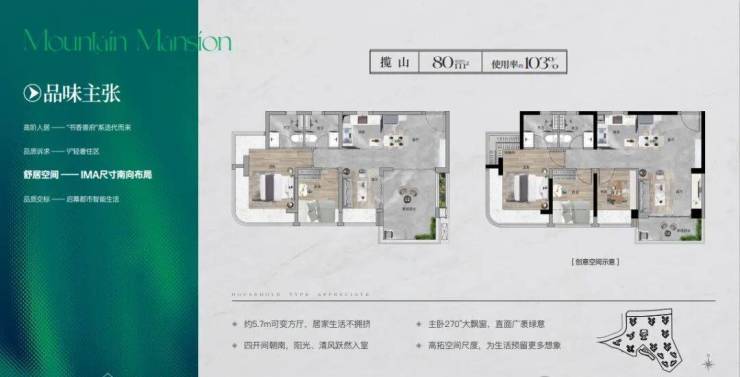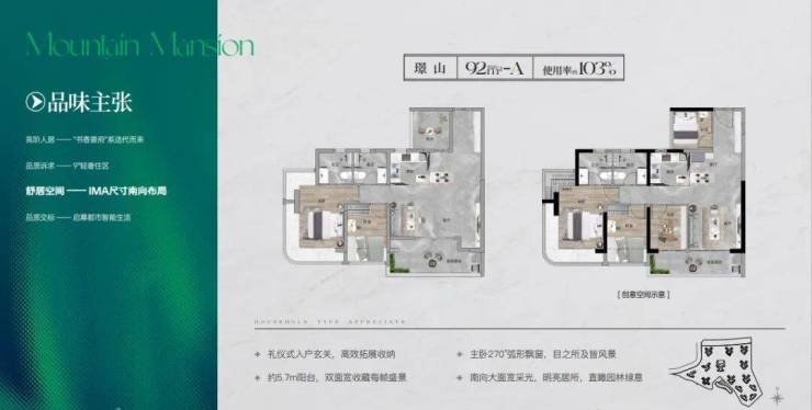 项目南向三面环山,采用Y型中庭中轴设计,最大化利用自然山景。每栋楼的山景视线实现最大化的同时,楼栋间的采光和通风也达到最佳状态。所有户型均朝南,即便是最小面积也能享受充足的南向采光。