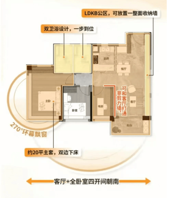 珠江天河都荟精准把握天河刚需刚改人群的居住需求,打造全明通透、高实用率的优质户型,涵盖72-152㎡全维度产品,户户朝南,使用率高达120%,总价320万起即可入手三房,精准适配不同预算、不同家庭结构的刚需刚改人群,以高性价比赋能理想人居。项目由南北两个地块组成,首期推出北地块,共4栋住宅,其中1栋、2栋为13-14层小高层,2T2户设计,靠近杨梅河,居住安静舒适;3栋、4栋为23层高层住宅,2T5户设计,与火炉山公园仅隔一条高唐路,景观视野优越。首推总户数284户,货量稀缺,其中72-123㎡户型分布在3栋、4栋,152㎡户型分布在1栋、2栋,目前项目暂未开盘,认筹可优先选房,按照珠实首开习惯,预计开盘价将有惊喜,性价比拉满。所有户型均采用全明通透设计,层高3.15米,采光通风极佳,搭配LDKG一体化设计,减少空间浪费,提升居住舒适度。具体来看,72㎡三房两卫户型堪称天河最小面积双卫浴三房,全部卧室朝南,主套约20平,配备近8米长270°环幕飘窗,冰箱外置设计最大化利用厨房空间,西侧非剪力墙可灵活拓展客厅空间,帮业主省下几十万房款,实现居住一步到位;85㎡三房两卫户型配备6米大阳台,横跨客厅与卧室,可打造花园、茶室等多功能空间,LDKG公区约42平,合并书房后客厅开间可达6米,次卧可放下1.5米床,舒适度远超同面积段产品;105㎡四房户型为单边户,南北通透,卧室分区设计兼顾三代人作息,近50平LDKG公区可满足全家休闲社交需求,适合三代同堂家庭;123㎡四房户型体验感堪比144平大宅,5.8米宽客厅可灵活打造X空间,四个卧室均可放下1.8米大床,主卧配备U形步入式衣帽间,品质感拉满;152㎡五空间户型为14层板楼小高层,一梯一户设计,享约11平独立阳光电梯厅,72平LDKG超级公区搭配9米宽南北双阳台,对望杨梅河,双南向套房设计,比肩200平大平层享受,满足高端改善需求。
