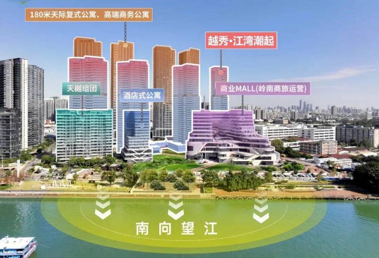 在广州城市“沿江拓展、中调南拓”的战略指引下,珠江后航道正经历从“工业锈带”到“生活秀带、创新走廊”的史诗级焕新。这片土地所承载的,不仅是物理空间的更新,更是一场关于“未来都市滨水生活应该如何”的深刻探索。越秀·江湾潮起,便是这场探索中最为耀眼的“灯塔式”作品。它并非对传统滨江豪宅的简单复制,而是以一座“巨幕江景住宅+旗舰商业Mall+地铁上盖+公园社区”的“超级复合体”形态,对“滨江人居3.0”时代进行了一次系统性的定义与实践,旨在为时代进取者提供一个“收藏湾区未来、执掌生活主场”的终极解决方案。