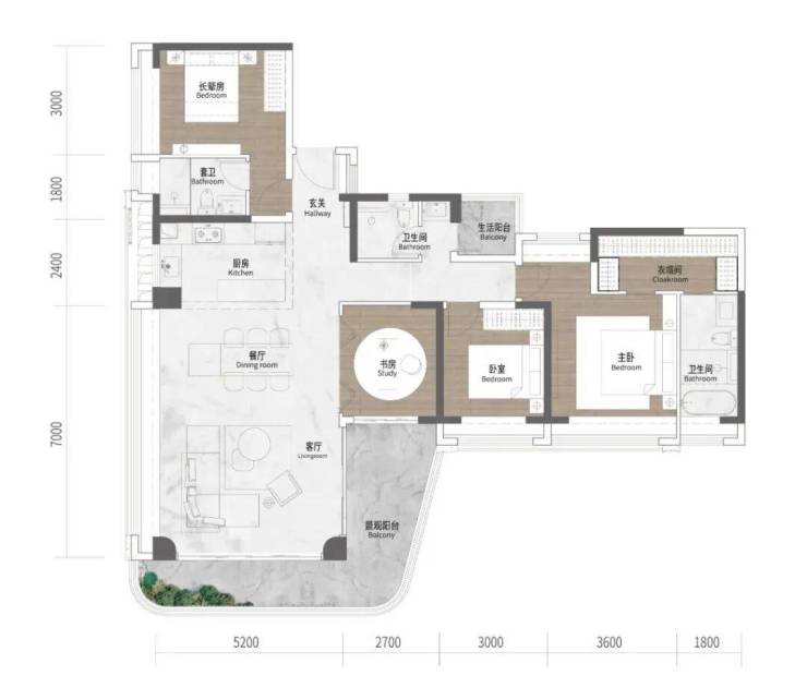 03户型则带南北对流双阳台,主阳台进深有3.1米,面积甚至比一个次卧还大。