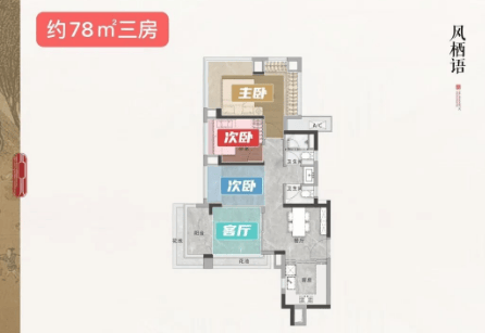 约78平米全新三房1.5卫:紧凑实用,功能齐全,适合小家庭居住。