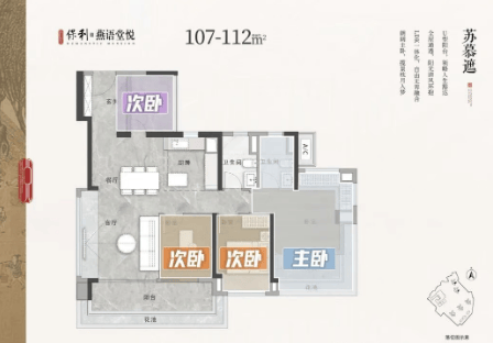 107-112平米四房两卫:客厅一面带飘窗,采光更佳,视野更开阔。